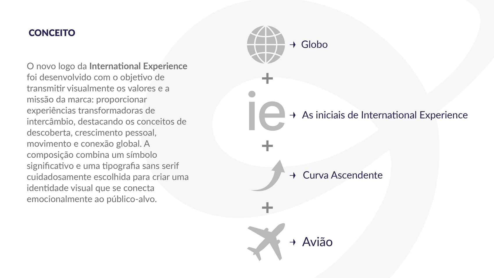 O novo design une o globo, o monograma “ie”, a curva ascendente e o avião em origami em um símbolo memorável e atemporal. Com uma paleta vibrante e tipografia moderna, a marca agora comunica clareza, progresso e inspiração, fortalecendo sua presença no cenário internacional.